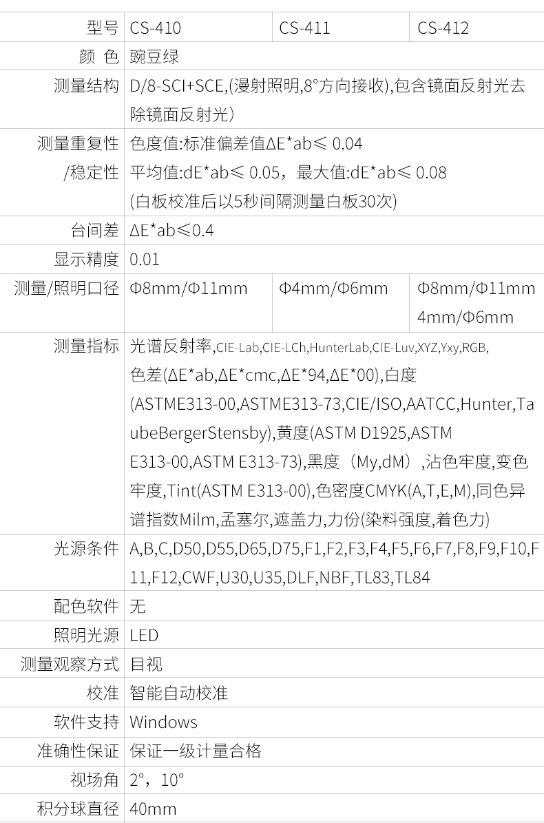 CS-410為8mm口徑;CS-411為4mm口徑;CS-412支持口徑切換。
