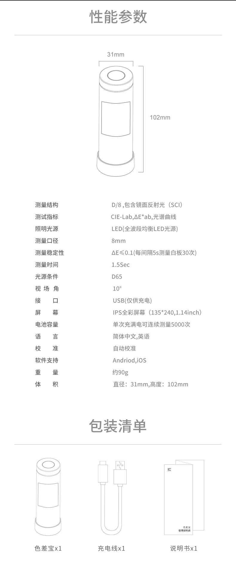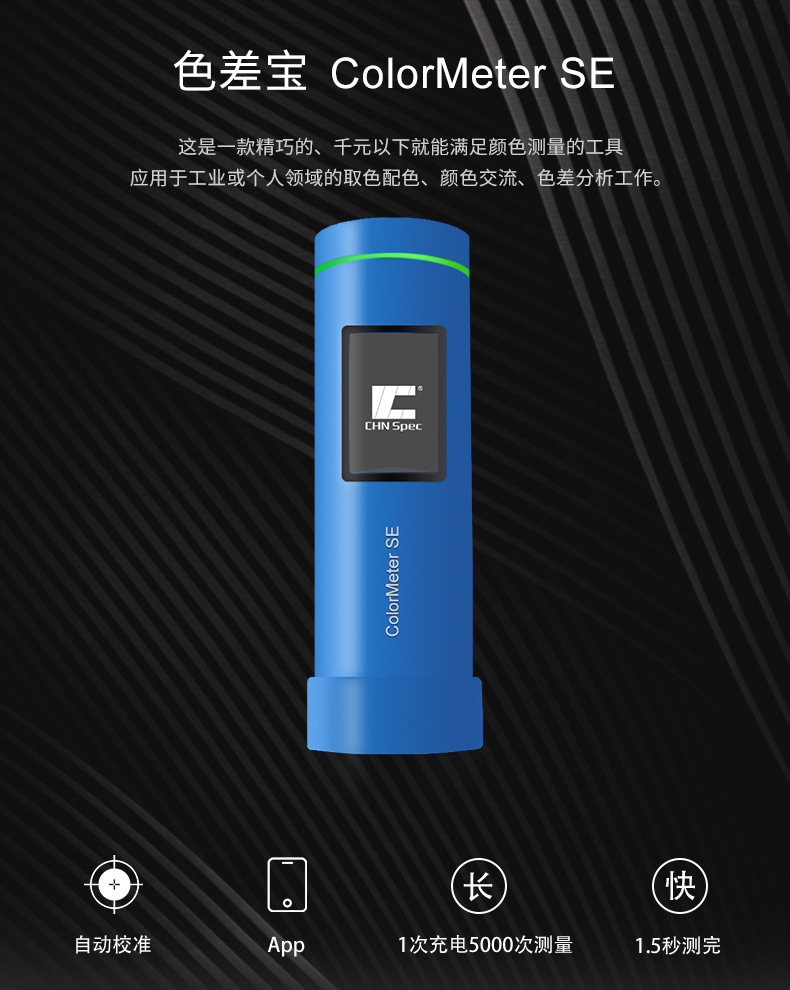 色差寶ColorMeter SE是色差寶系列的基礎款儀器,能滿足基本的顏色檢測需求,但是又不同于傳統色差儀。它體積小巧,采用D/8分光測色儀的結構,使用更方便;與安卓或IOS設備無線連接,可以在手機上對顏色進行管理;具備色號查找功能,查找你想要的顏色。廣泛應用于塑膠、印刷、包裝、紡織、服裝等行業的顏色管控。