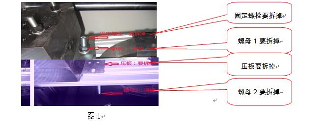 ⑴ 卸下固定螺母1后,把平墊和彈簧墊取下→⑵取下壓板→⑶松開(kāi)螺母2→⑷擰下固定螺栓。