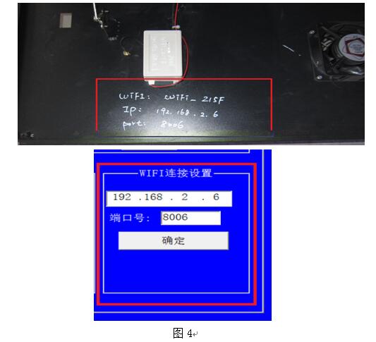 如果是第一次調(diào)試或使用軟件,建議檢查WIFI的IP地址和端口號(hào)設(shè)置是否正確,在“系統(tǒng)設(shè)置”對(duì)話框內(nèi),有“WIFI連接設(shè)置”項(xiàng),框內(nèi)有IP和端口號(hào)的信息,在設(shè)備的前面板打開(kāi)后,有此車轍儀的相關(guān)信息(見(jiàn)圖4),如果對(duì)應(yīng)就是設(shè)置正確。