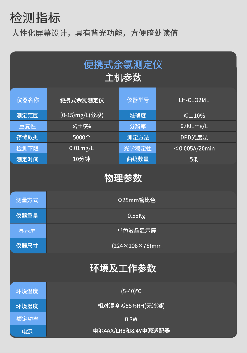 連華科技LH-CLO2ML便攜式余氯測定儀
